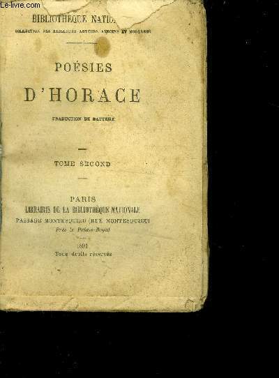 Librairie de la Bibliothèque Nationale. 1891. In-16. Broché. Etat passable, Livré sans Couverture, Dos abîmé, Quelques rousseurs. 192 pages. Manque les plats. Dos fendu. Pages non coupées.. . . . Classification Dewey : 841-Poésie