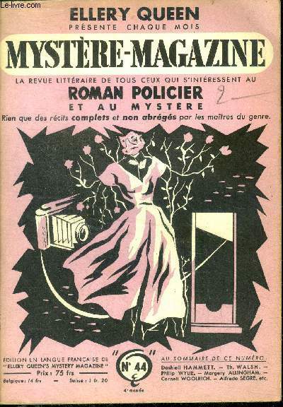Ellery queen presente chaque mois Mystere magazine, la revue littéraire de tous ceux qui s'interressent au policier et au mystère. SOMMAIRE : le flair de perkins par philip wylie, le temoin objectif de margery allingham, et allez donc prouver le crime ! par emile danoen, le dixieme indice par dashiell hammett, un client serieux par thomas walsh, les roses en robe de velours par alfredo segre, je deteste lanzi ! par andre piljean, si les morts pouvaient parler par cornell woolrich, figaro detective par beaumarchais, au pays des merveilles par andre ferran, ... Classification Dewey : 70.49-Presse illustrée, magazines, revues