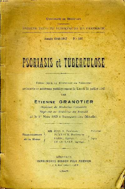Imprimerie Bissey Fils Frères. 1947. In-8. Broché. Etat d'usage, Couv. défraîchie, Dos abîmé, Papier jauni. 72 pages.. . . . Classification Dewey : 618-Autres branches de la médecine