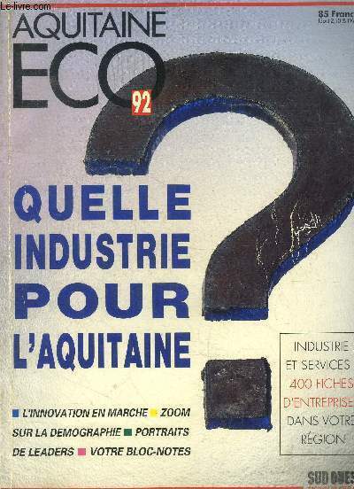 Sud Ouest. 1992. In-4. Broché. Bon état, Couv. défraîchie, Dos satisfaisant, Intérieur frais. 304 pages augmentées de nombreuses photos en couleurs dans texte.. . . . Classification Dewey : 330-Economie