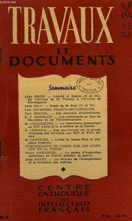 Abbé Brien, Liberté et dogme (II, III), De l'Univers de St Thomas à l'Univers de Kierkegaard. Les journées franco-britanniques... Classification Dewey : 210-Philosophie et théorie