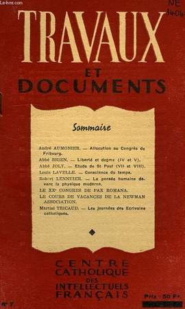 A. Aumonier, Allocution au congrès de Fribourg. Abbé Brien. Liberté et dogme (IV et V). Le XXe Congrès de Pax Romana... Classification Dewey : 210-Philosophie et théorie