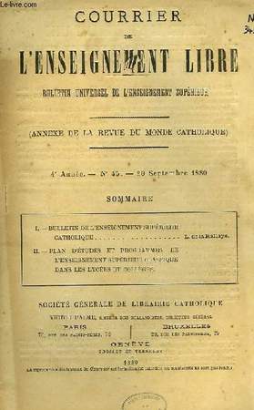 Annexe de la Revue du monde catholique. Bulletin de l'Ens. Sup. Catho. Plan d'études et programmes... Classification Dewey : 260-Théologie sociale chrétienne