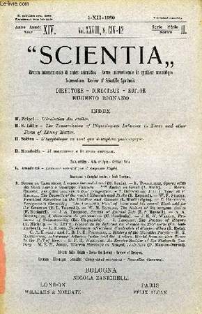 Dir. E. Rignano. L'évolution des étoiles. The Transmission of Physiological Influence in Nerve and Other Form of Living Matter. L'egyptologie en tant que discipline philologique. Il marxismo e la crisi europea. L'oeuvre scientifique d'Auguste Righi... Classification Dewey : 500-SCIENCES DE LA NATURE ET MATHEMATIQUES