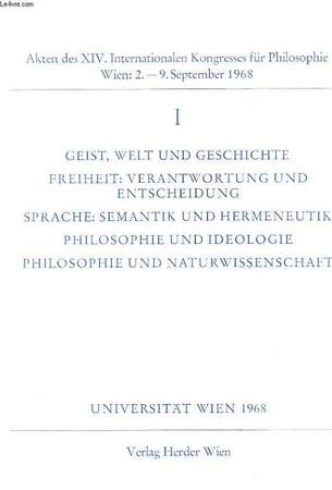 Universität Wien, Herder Wien. 1968. In-8. Broché. Etat d'usage, Couv. légèrement passée, Dos fané, Intérieur bon état. 656 pages. Texte en allemand, anglais et français.. . . . Classification Dewey : 100-PHILOSOPHIE ET DISCIPLINES CONNEXES