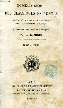 Précédé d'une intro. historique sur la littérature espagnole. Par A. Ramirez. Classification Dewey : 860-Littératures espagnole et portugaise