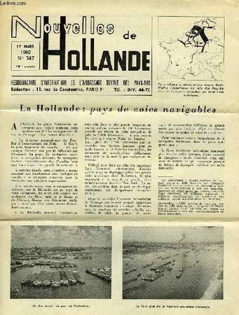 Hebdomadaire d'information de l'ambassade royale des Pays-Bas. La Hollande: Pays de voies navigables. Mort d'Ernest Kuyper... Classification Dewey : 949.2-Pays Bas
