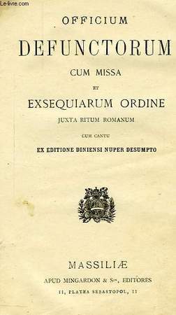 Mingardon & Sos. 1904. In-12. Relié. Etat passable, Couv. légèrement passée, Dos satisfaisant, Déchirures. 110 pages. Texte en latin, avec partitions musicales. Couverture muette. Couverture se détachant. Quelques pages détachées. Annotation en page de garde. Quelques taches au bord des premières pages. Pages se détachant. Légères taches dans le texte n'altérant pas la lecture.. . . . Classification Dewey : 265-Rites, cérémonies et sacrements