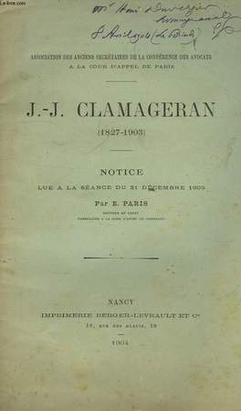 Imprimerie berger-Levrault et Cie. 1904. In-8. Broché. Etat d'usage, Tâchée, Dos satisfaisant, Intérieur bon état. 23 pages. Annotations d'époque sur le 1er plat.. . . . Classification Dewey : 923-Politiciens, economistes, juristes, enseignants