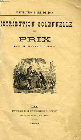 Typographie et Lithographie E. Campion, Dax. 1885. In-8. Broché. Etat d'usage, 1er plat abîmé, Dos frotté, Intérieur bon état. 42 pages. 1er plat très abîmé avec manques importants.. . . . Classification Dewey : 370-Education