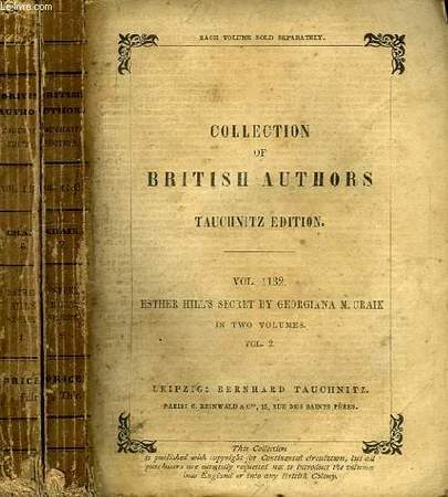 Collection of British Authors, Tauchnitz Edition, Vol. 1131, 1132. Copyright edition. By the author of 'Mildred', etc. Classification Dewey : 420-Langue anglaise. Anglo-saxon