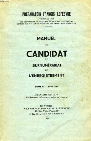PREPARATION FRANCIS LEFEBVRE. 9ème édition. 1941. In-8. Broché. Bon état, Couv. légèrement passée, Coiffe en pied abîmée, Intérieur bon état. 287 pages.. . . . Classification Dewey : 346-Droit privé, civil