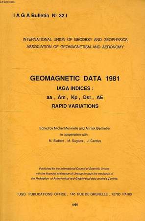 Int. Union of Geodesy and Geophysics ASsoc. of Geomagnetism and Aeronomy. Ed. by Michjel Menvielle and Annick Berthelier. Classification Dewey : 550-Sciences de la Terre et des autres mondes