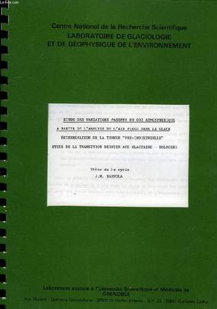 Labo. associé à l'Université scientifique et médicale de Grenoble. Le gaz dans la glace. Partie expérimentale. Détermination du niveau 'pré-industriel' du CO2 atmosphérique... Classification Dewey : 550-Sciences de la Terre et des autres mondes