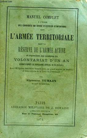 Rédigé d'après le prog. officiel du 26 juin 1874. Avec 126 figures intercalées dans le texte. Classification Dewey : 355-Art et science militaires, légion