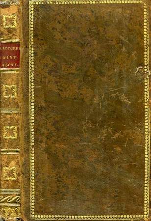 Auteur : Anonyme (par un Professeur de l’Université) Titre : Lectures d’un Père à son Fils Éditeur : Paris, À la Librairie de la Jeunesse, chez D. Belin, quai des Augustins, n° 47 Année : 1833 Édition : Deuxième édition Reliure : Plein veau brun moucheté, dos lisse orné de filets et fers dorés, titre doré Format : In‑12, env. 15 x 10 cm Langue : Français État : Assez bon. Frottements marqués au cuir, coins émoussés, coiffes usées avec petit manque en tête, mors solides. Intérieur globalement frais avec quelques rousseurs éparses et menues fentes marginales sans manque Description : Ouvrage d’éducation destiné à la jeunesse, précédé d’un avis “Aux parens et aux instituteurs”. Beau frontispice gravé et titre gravé orné, impression soignée. Édition Belin, maison spécialisée dans les livres pour la jeunesse au début du XIXe siècle