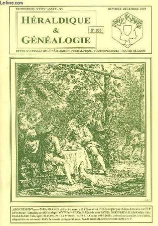 Héraldique & Généalogie. 2002. In-4. Broché. Très bon état, Couv. fraîche, Dos impeccable, Intérieur frais. Paginé de 303 à 400. Illustré de nombreuses armoiries en noir et blanc. Texte sur 2 colonnes.. . . . Classification Dewey : 929-Généalogie
