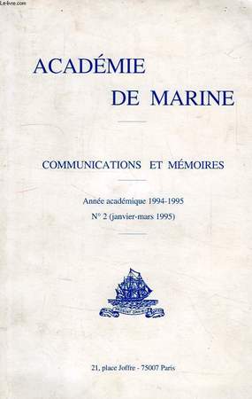 Académie de Marine. 1995. In-8. Broché. Bon état, Couv. légèrement passée, Dos satisfaisant, Intérieur frais. 128 pages.. . . . Classification Dewey : 386-Marine