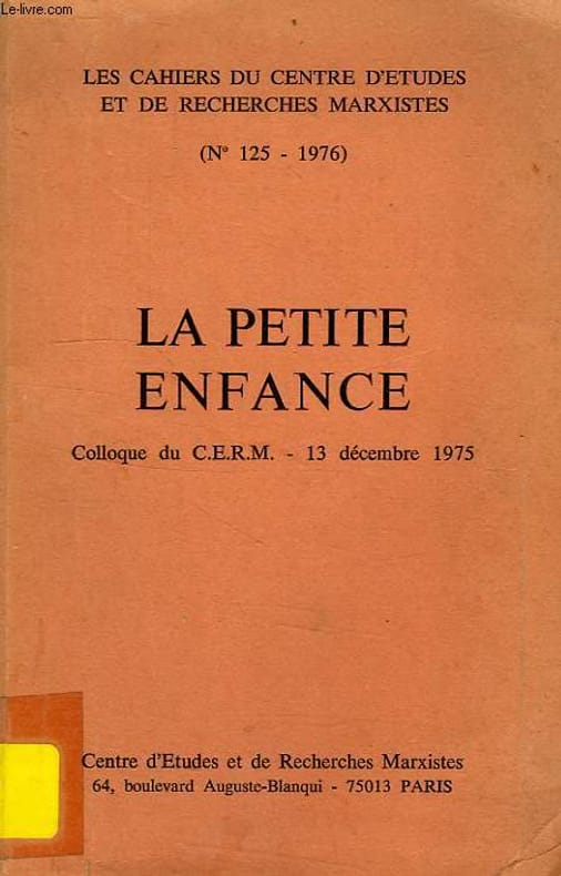 Les Cahiers du Centre d'Etudes et de Recherches Marxistes, n° 125, 1976. Classification Dewey : 618.92-Pédiatrie