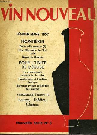 Frontières. Berlin ville ouverte (II). Une Allemagne de l'Est parle. Notes de Hongrie. Pour l'unité de l'Eglise. La communaute prot. de Taizé. Prophétisme et tradition judaïque... Classification Dewey : 290-Religion comparée. Autres religions