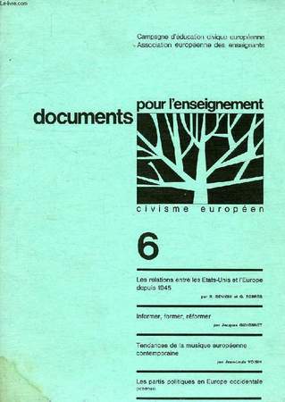 Les relations entre les USA et l'Europe depuis 1945. Informer, former, réformer. Tendances de la musique européenne contemporaine. Les partis politiques en Europe occidentale. Tirés à part: La Genèse de l'idée européenne (annoté); Heurs et malheurs de l'Europe verte; Conf. permanente des Ministres Européens de l'Educ.; Editorial. Classification Dewey : 940-Histoire générale de l'Europe