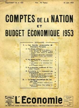Les données permanentes de l'économie française: Les charges publiques, Les charges privées, Le productivité insuffisante de l'économie française. L'orientation et le financement des investissements. Le budget 1953. Classification Dewey : 330-Economie