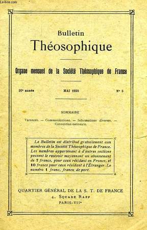 Organe mensuel de la Société Théosophique de France. Communications. Informations diverses. Convention nationale. Classification Dewey : 299-Autres religions, théosophie
