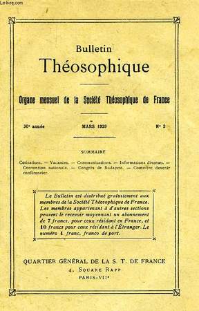 Société Théosophique de France. 1929. In-8. Broché. Bon état, Couv. convenable, Dos satisfaisant, Intérieur acceptable. Paginé de 42 à 60.. . . . Classification Dewey : 299-Autres religions, théosophie