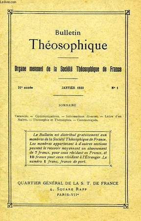 Organe mensuel de la Société Théosophique de France. Lettre d'un Maître. Théosophie et Théosophes. Communiqués... Classification Dewey : 299-Autres religions, théosophie