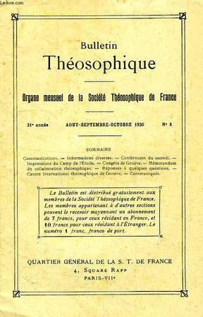 Société Théosophique de France. 1930. In-8. Broché. Bon état, Couv. convenable, Dos satisfaisant, Intérieur frais. Paginé de 186 à 216.. . . . Classification Dewey : 299-Autres religions, théosophie