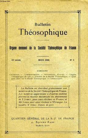 Organe mensuel de la Société Théosophique de France. Congrès Théos. de 1931. L'Avenir de la S.T. Quelques idées sur le travail Théos. Classification Dewey : 299-Autres religions, théosophie