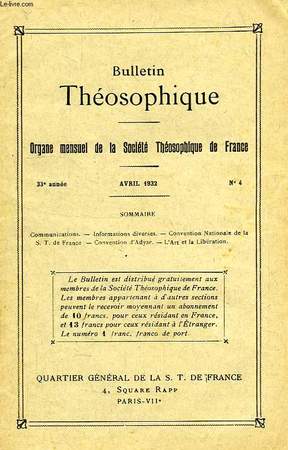 Société Théosophique de France. 1932. In-8. Broché. Etat d'usage, 2ème plat abîmé, Dos satisfaisant, Intérieur frais. Paginé de 66 à 88.. . . . Classification Dewey : 299-Autres religions, théosophie