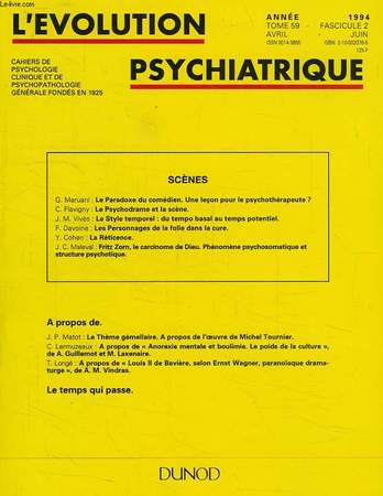 Scènes. G. Maruani, Le paradoxe du comédien, Une leçon pour le psychothérapeute ? F. Davoine, Les personnages de la folie dans la cure. Y. Cohen. La réticence... Classification Dewey : 619.89-Psychiatrie