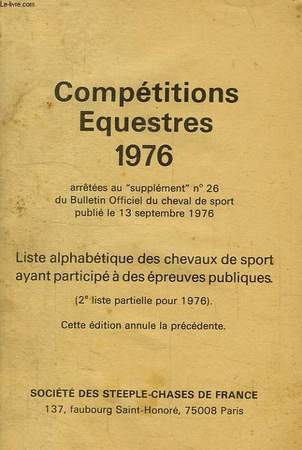 Liste alphabétique des chevaux de sport ayant participé à des épreuves publiques. 2e liste partielle pour 1976. Classification Dewey : 798-Sports équestres, courses d'animaux
