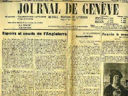 Journal de Genève. 1941. In-Plano. En feuillets. Etat d'usage, Livré sans Couverture, Dos satisfaisant, Pliures. 8 pages. Illustré de quelques photos en noir et blanc. Texte sur 4 colonnes.. . . . Classification Dewey : 70.1-Journaux