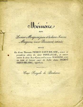 Cour Royale de Bordeaux. Non daté. In-8. Broché. Etat d'usage, Livré sans Couverture, Dos satisfaisant, Intérieur acceptable. Plaquette de 21 pages.. . . . Classification Dewey : 340-Droit