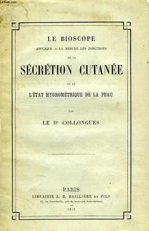 Principes hygrométriques sur lesquelles reposent la construction du Bioscope hygroderme. Mécanisme du Bioscope... Classification Dewey : 616.5-Dermatologie
