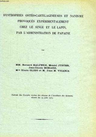 Extrait des 'Comptes rendus des séances de l'Académie des Sciences', séance du 29 juin 1964. Par B. Halpern, M. Juster, J.C. Morard, Mlle N. Oligo et J.M. Vicaria. Classification Dewey : 610-Sciences médicales. Médecine