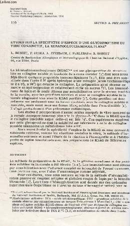Reprinted from H. Peeters, 'Protides of the Biological Fluids', 1964. Section A. Phylogeny. By L. Robert, P. Oudea, A Zweibaum, J. Parlebas, B. Robert. Classification Dewey : 610-Sciences médicales. Médecine