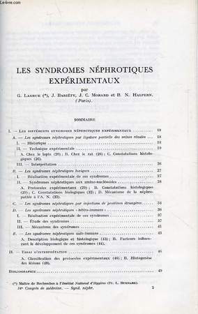 34e Congrès de Médecine. Par G. Lagrue, J. Bariéty, J.C. Morard, B.N. Halpern. Les syndromes néphrotiques par ligature partielle des veines rénales. Les syndromes néphrotiques toxiques... Classification Dewey : 610-Sciences médicales. Médecine