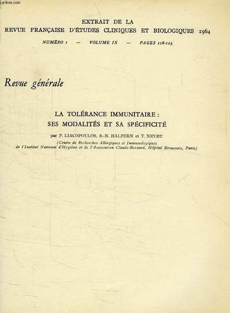 Revue Française d'Etudes Cliniques et Biologiques. 1964. In-8. En feuillets. Bon état, Couv. convenable, Dos satisfaisant, Intérieur frais. Plaquette paginée de 119 à 125. Texte sur 2 colonnes.. . . . Classification Dewey : 610-Sciences médicales. Médecine