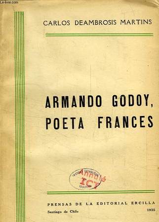 3 vol. in-12 br., Quatre Nocturnes traduits par Armand Godoy, Emile-Paul Frères, Paris, 1929, 42 pp. [ Livre dédicacé par l'auteur ] [ Avec : ] Armando Godoy, Poeta Frances, Prensas de la Editorial Ercilla, Santiag de Chile, 1935, 361 pp. [ Avec : ] La Poesia de Armando Godoy, Préface de Jean Royère, Editorial Iberia, Madrid, Barcelona, Valencia, s.d. [ circa 1932-1933 ], 55 pp. [ Livre dédicacé par l'auteur ]