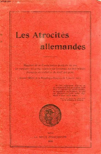 Rapport de la Commission instituée en vue de constater les actes commis par l'ennemi, sur le territoire français, en violation du droit des gens. Journal Officiel de la R.F. du 8 jan. 1915. Classification Dewey : 940.3-Première Guerre mondiale 1914-1918