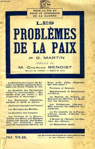 Pour la fin et pour le lendemain de la guerre. Préface de Charles Benoist. Classification Dewey : 940.3-Première Guerre mondiale 1914-1918