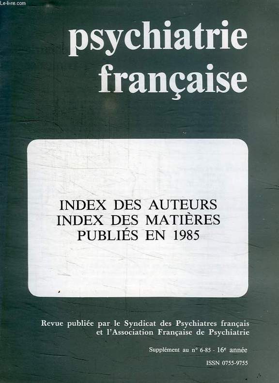 Supplément au n° 6-85, 16e année. Classification Dewey : 619.89-Psychiatrie