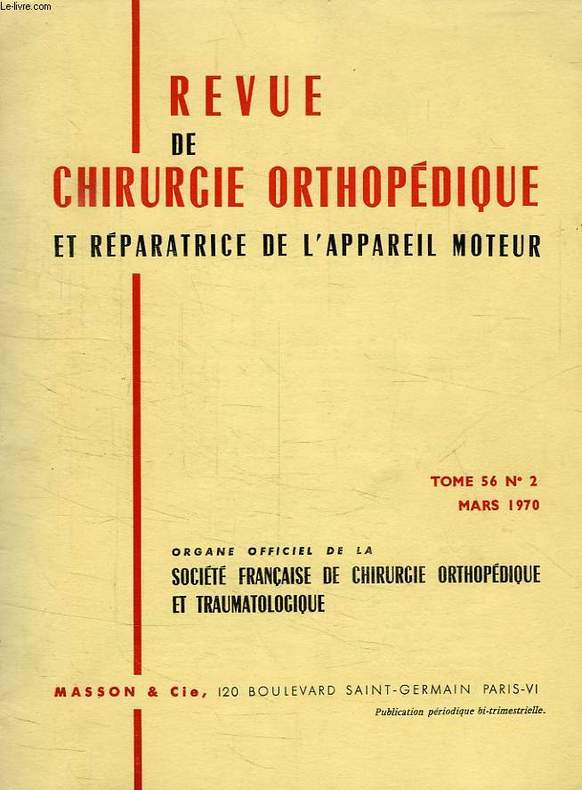 Société Française de Chirurgie Orthopédique et Traumatologique. Physiologie des muscles élévateurs de l'épaule, J.J. Comtet et Y Auffray. Les pseudarthroses congénitales de jambe (A propos de 13 observations), André Apoil. Les déformations du tronc après paraplégie chez les enfants et adolescents, B. Audic et M. Maury... Classification Dewey : 616.7-Maladies de l'appareil locomoteur