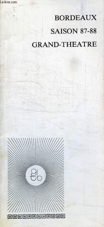Grand Théâtre de Bordeaux. 1987. In-8. Broché. Bon état, Couv. convenable, Dos satisfaisant, Intérieur frais. Plaquette de 25 pages. Quelques annotations.. . . . Classification Dewey : 792-Théâtre