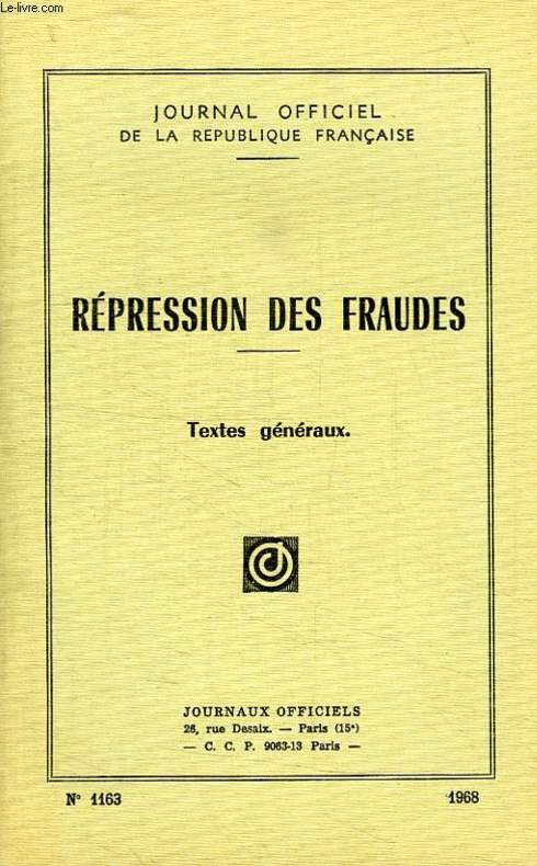 Journal Officiel de la R.F., n° 1163, 1968. Textes généraux. Classification Dewey : 340-Droit