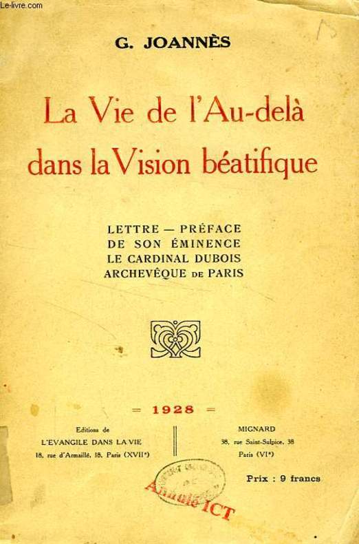 Paris, Editions de l'Evangile dans la Vie/Mignard, 1928. "14 x 20, 175 pp., broché, état moyen (couverture défraîchie, papier jauni; cachets du Collège Jésuite Saint Stanislas à Mons"