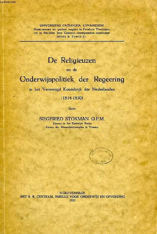 's-Gravenhage, Het R.K.Centraal Bureau voor Onderwijs en Opvoeding 1935 xxiii + 473pp., 26cm., uit de reeks « Universitas Catholica Lovaniensis - Dissertationes ad gradum Magistri in facultate Theologica vel in Facultate Iuris Canonici consequendum conscriptae » series II Tomus 27, onopengesneden, mooie staat, [bijgevoegd: spijskaart "Feestmaal aangeboden door den H.E.P. Provinciaal der Nederlandse Minderbroeders ter gelegenheid van de promotie van den Eerw. Pater S. Stokman O.F.M. tot de graad van magister in het kerkelijk recht aan de Katholieke Hogeschool te Leuven (14 juli 1935)", 4pp.], R15221